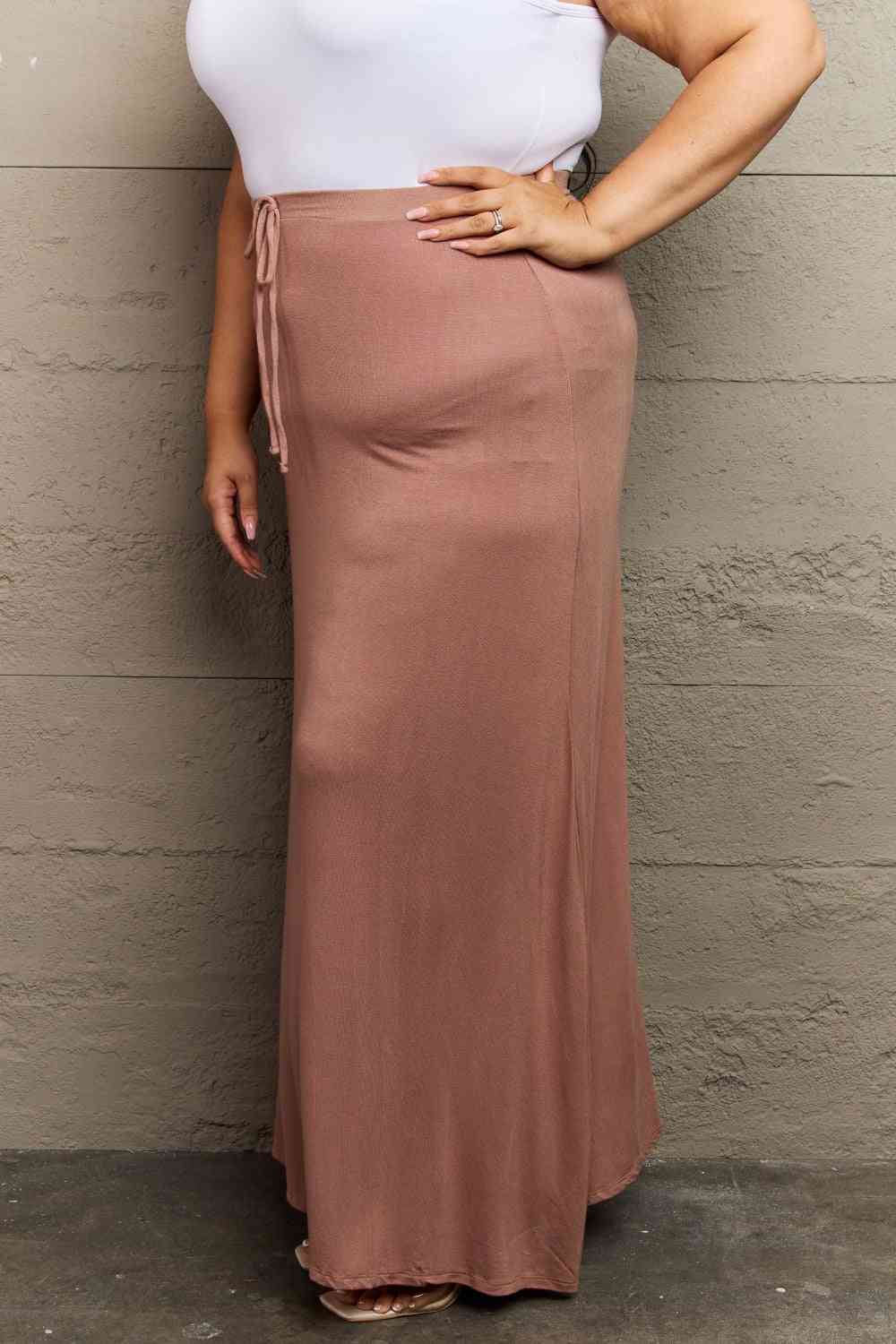 This skirt offers a flattering silhouette that gracefully flares out for a feminine touch. The non-functional drawstring adds a charming detail while ensuring a perfect fit without the hassle of adjusting. Whether you're dressing up for a special occasion or keeping it casual, this maxi skirt is the ideal choice for comfort and fashion-forward elegance. Embrace effortless chic with this timeless piece that pairs beautifully with any top or blouse.