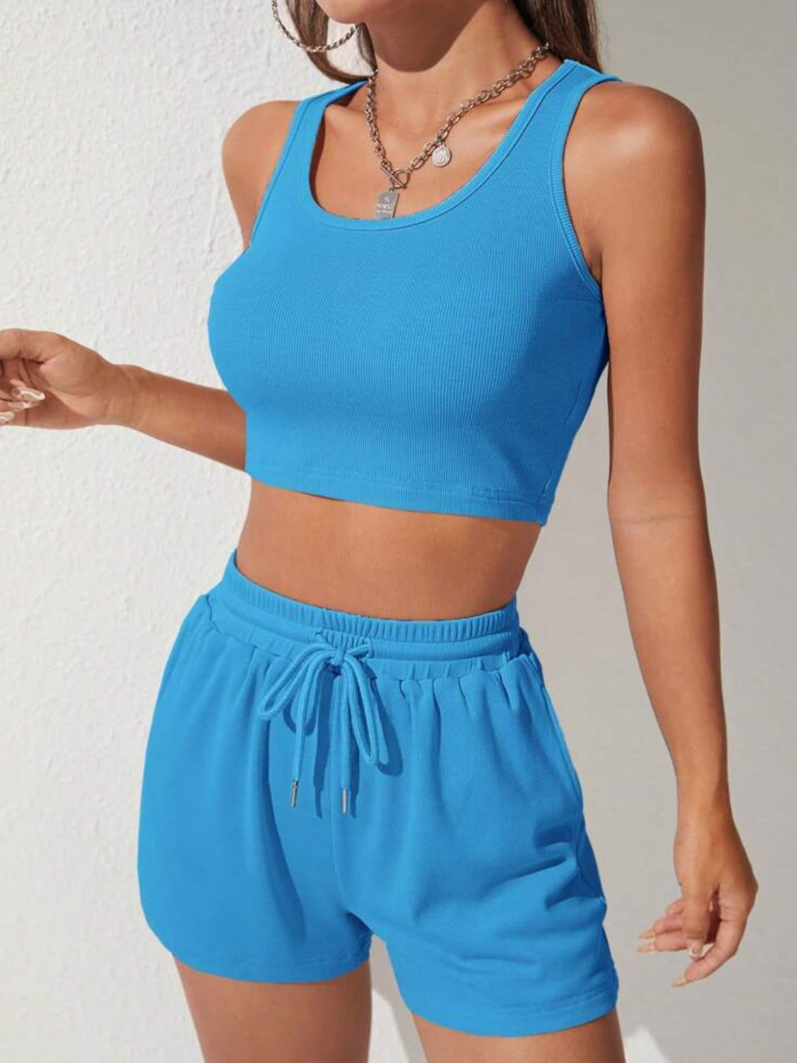L:Bust 33.46 in, Top Length 14.69 in, Shoulder 10.59 in, HIP 43.70 in, inseam 2.76 in, Bottom Length 13.78 in, Waist 27.56 in